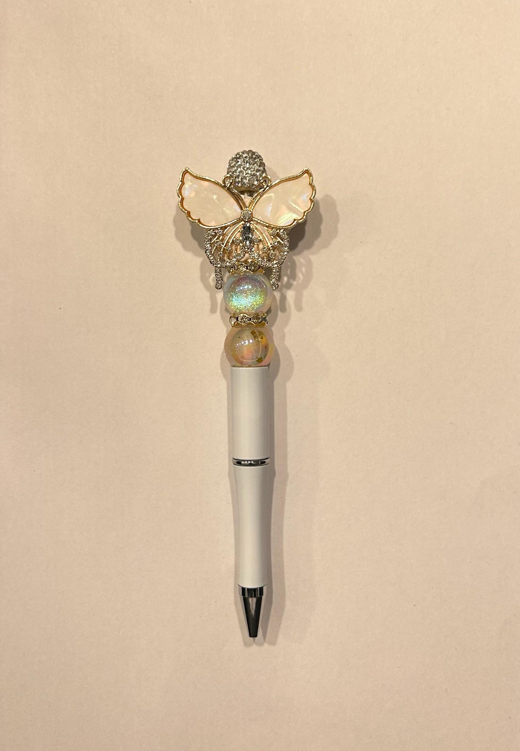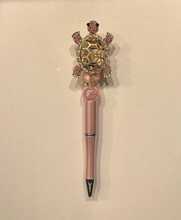 Handgemaakte kralenpen – Schildpad in roze en goud