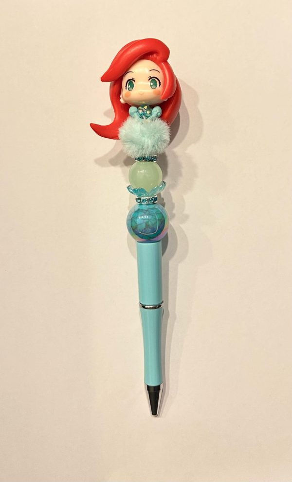 Deze betoverende pen brengt de magie van de zee tot leven met haar zeemeerminlook, zeegroene tinten, glinsterende kralen en een schattige pop met rood haar. Perfect voor kleine dromers én volwassen zeemeermin-fans!