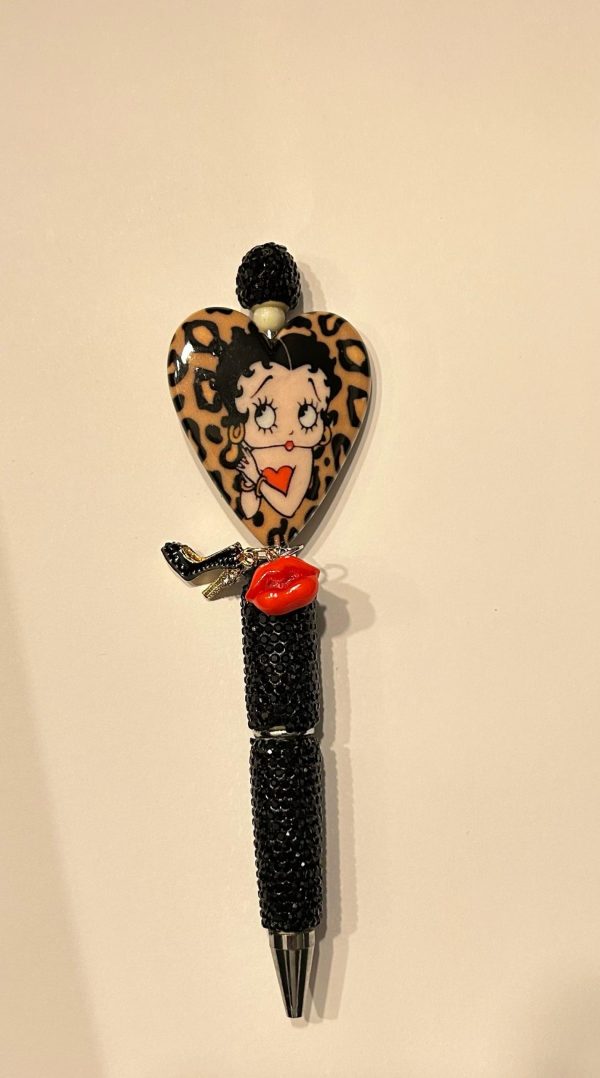 Een speelse én glamoureuze pen met panterprint, rode lippen en high heel bedeltje. Voor iedereen die houdt van een tikkeltje retro, een flinke dosis glitter en een vleugje attitude!