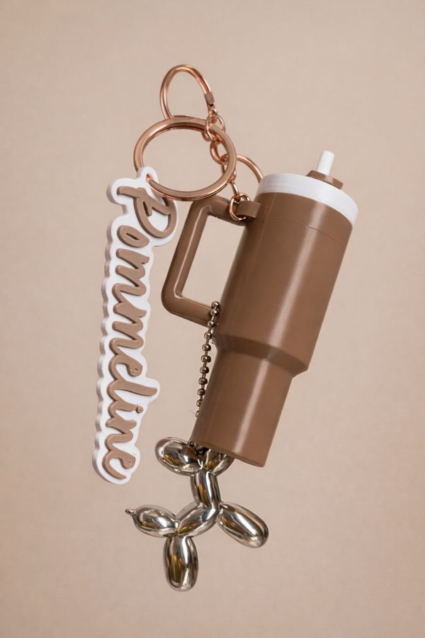 Unieke sleutelhanger met mini tumbler en gepersonaliseerde naam. De naam wordt door ons zelf 3D geprint en maakt elke sleutelhanger persoonlijk en uniek. Perfect voor je sleutelbos of tas.